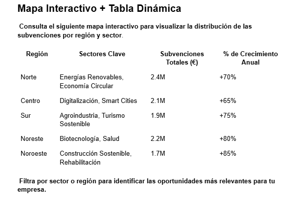 En un mercado cada vez ms competitivo, saber dnde y en qu invertir puede marcar la diferencia. Sabas que las subvenciones no son iguales en todas las regiones? Cada comunidad autnoma o regin prioriza ciertos sectores estratgicos: energas renovables, digitalizacin, agroindustria... y mucho ms!